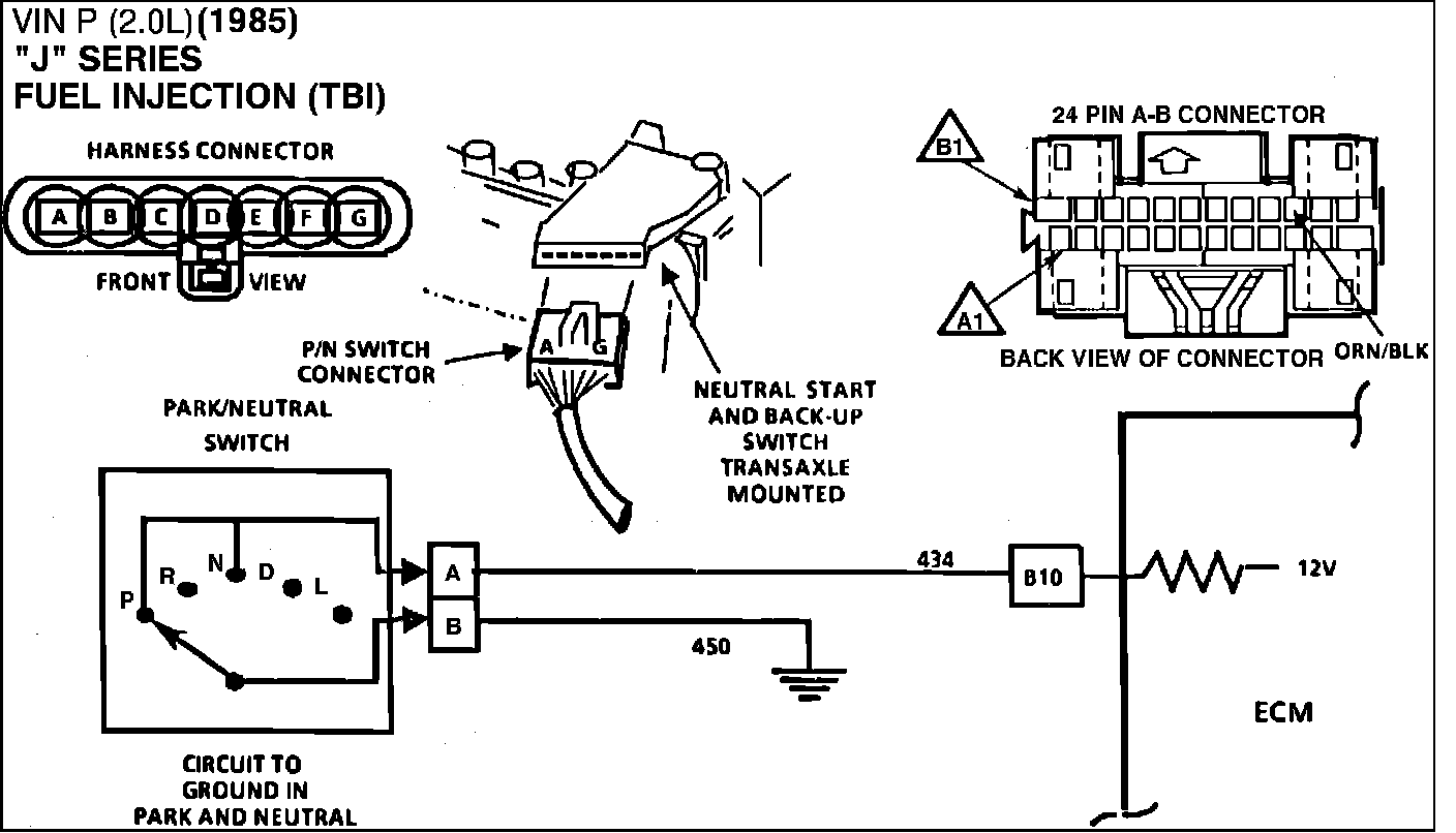 3. Checks to this point indicate the P/N switch and wiring are OK, however, the ECM signal voltage on CKT. 434 may be missing. To check, reconnect ECM. Either back probe ECM connector circuit 434 with selector in drive or disconnect P/N switch and probe harness connector CKT 434 with a voltmeter to ground.