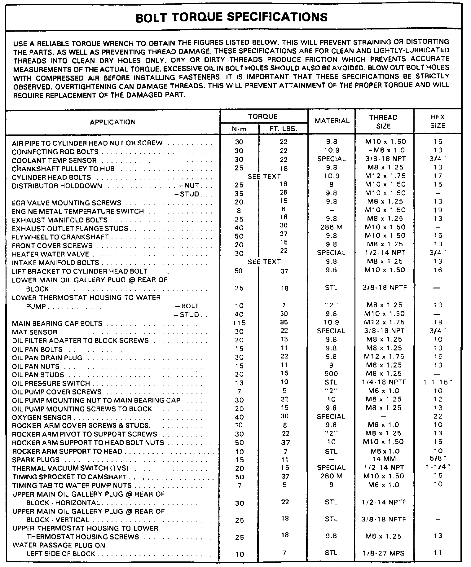 Continued Engine Specifications: