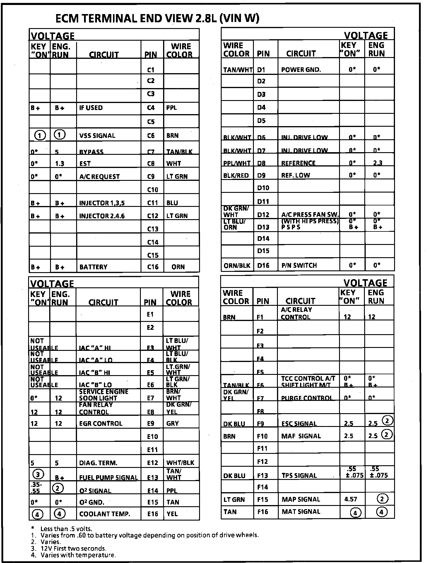 ECM Terminal ID & Voltage Specifications (Part 1 of 2):