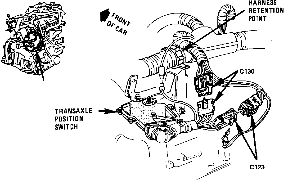 The Transaxle Position Switch is located at the rear of engine, top LH side of transaxle.
