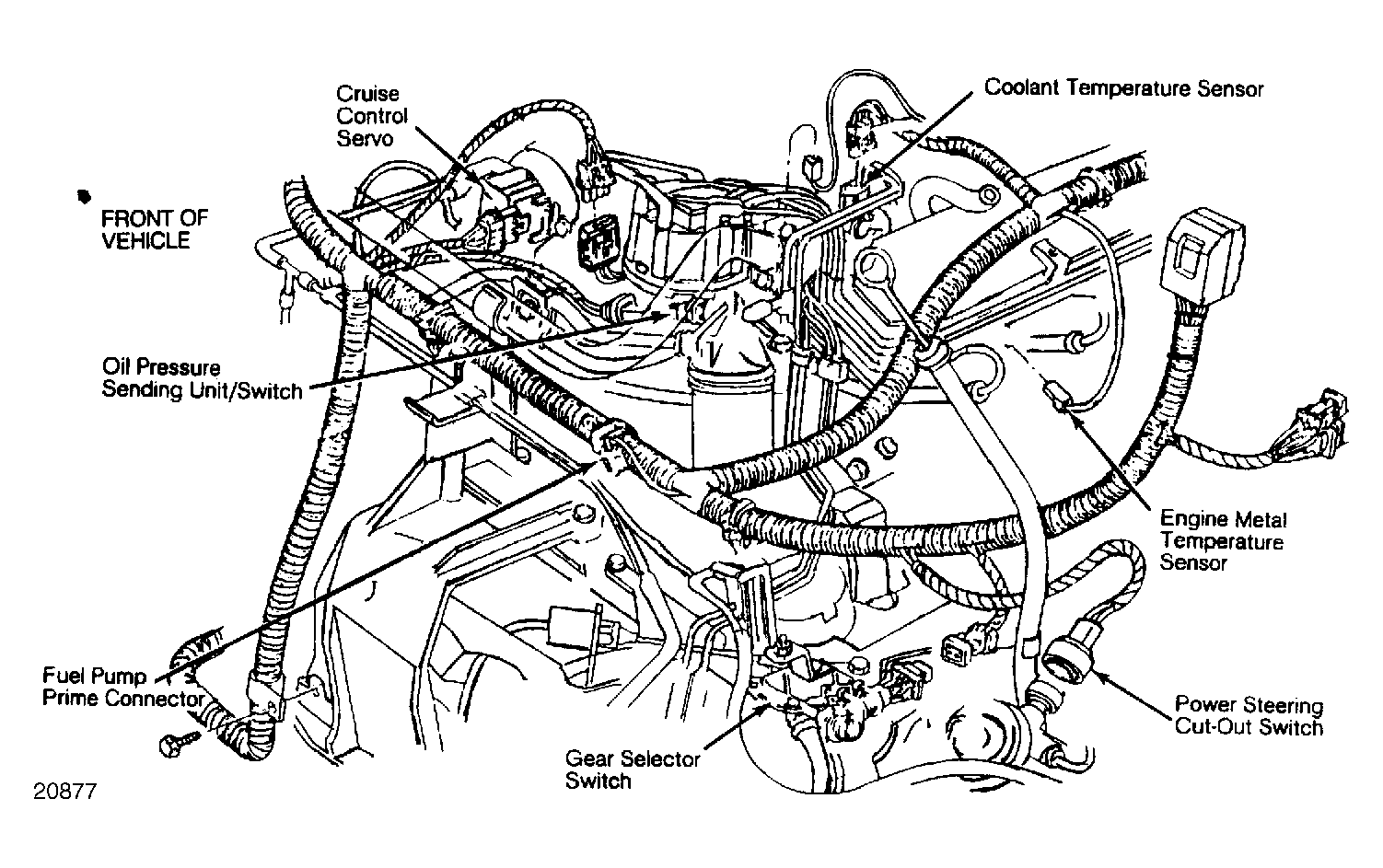 | Cruise Control Servo | At left front corner of engine, in front of distributor. See Figure. |