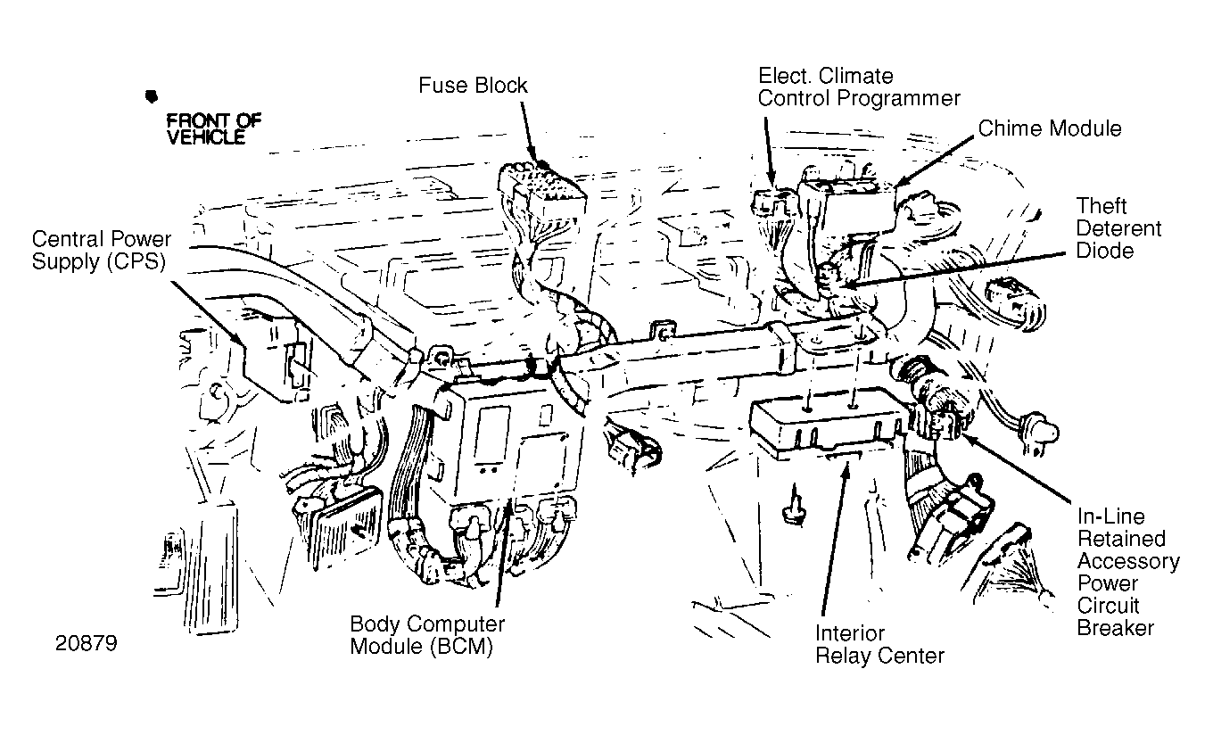 | Theft Deterrent Module | Under left side of dash, near kick panel. See Figure. |