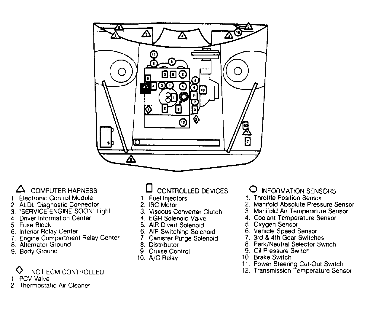 | Electronic Control Module (ECM) | Under right side of dash, near glove box. See Figure . |