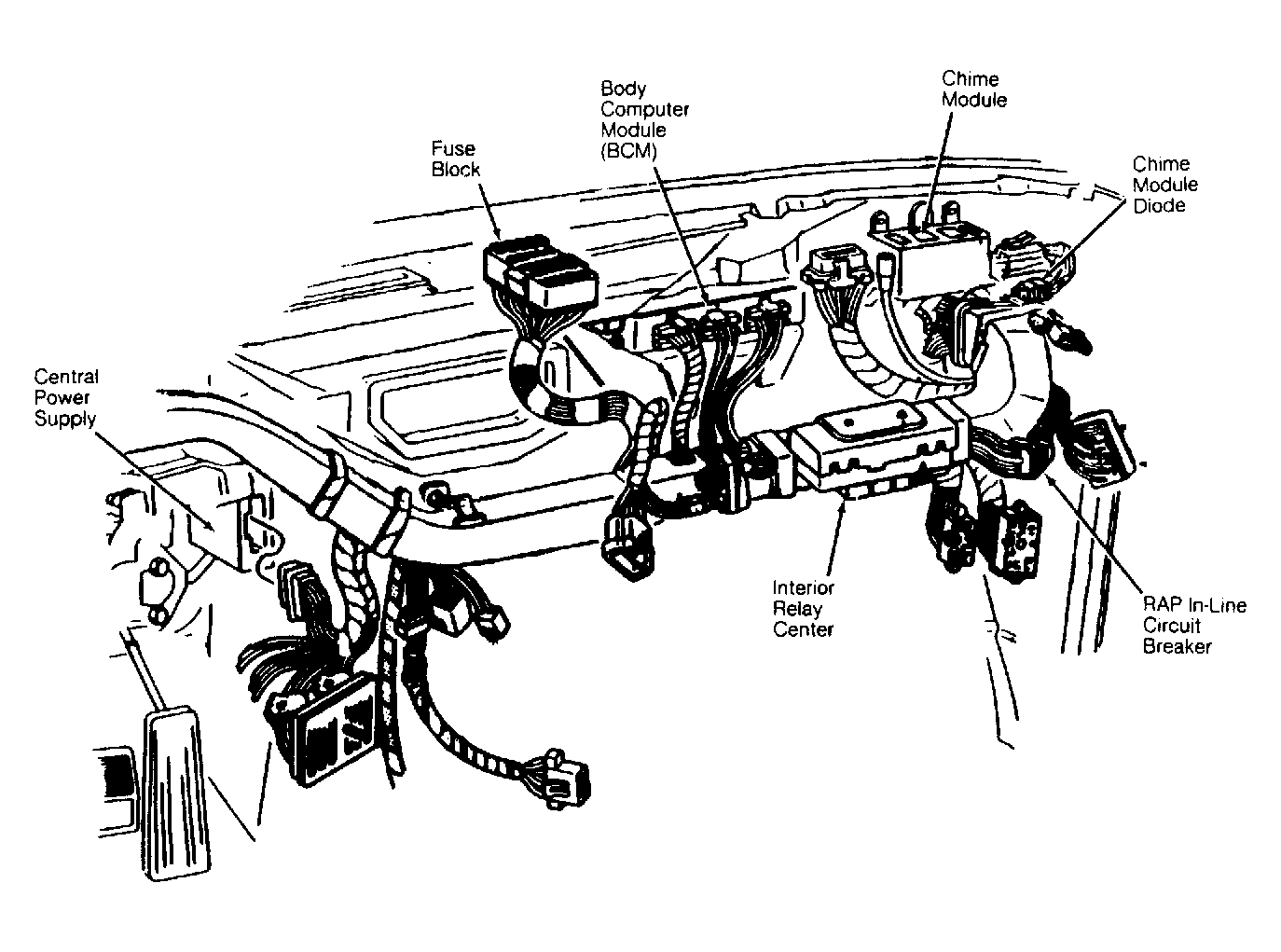 | Chime Module | Under right side of dash, to right of glove box. See Figure . |