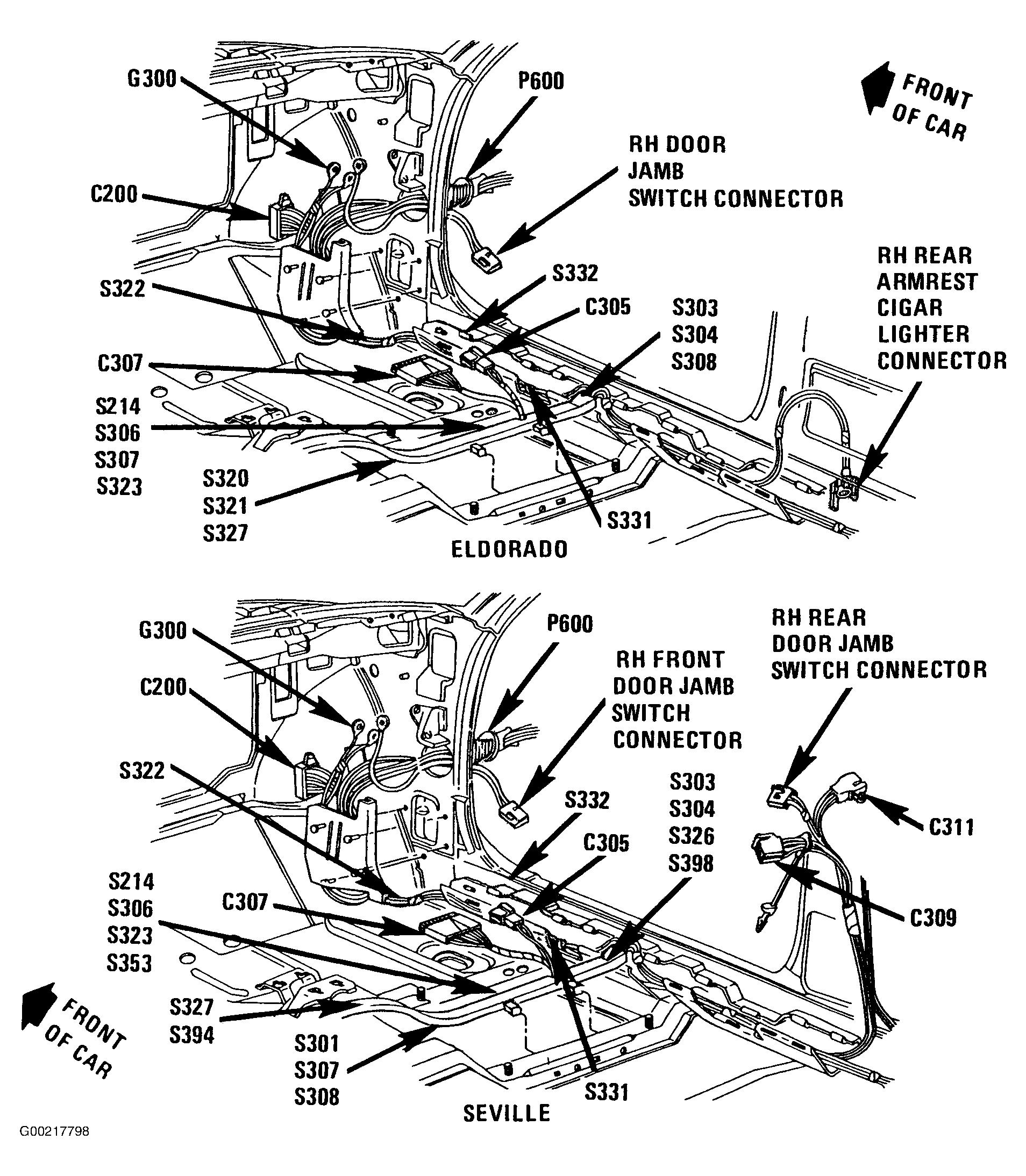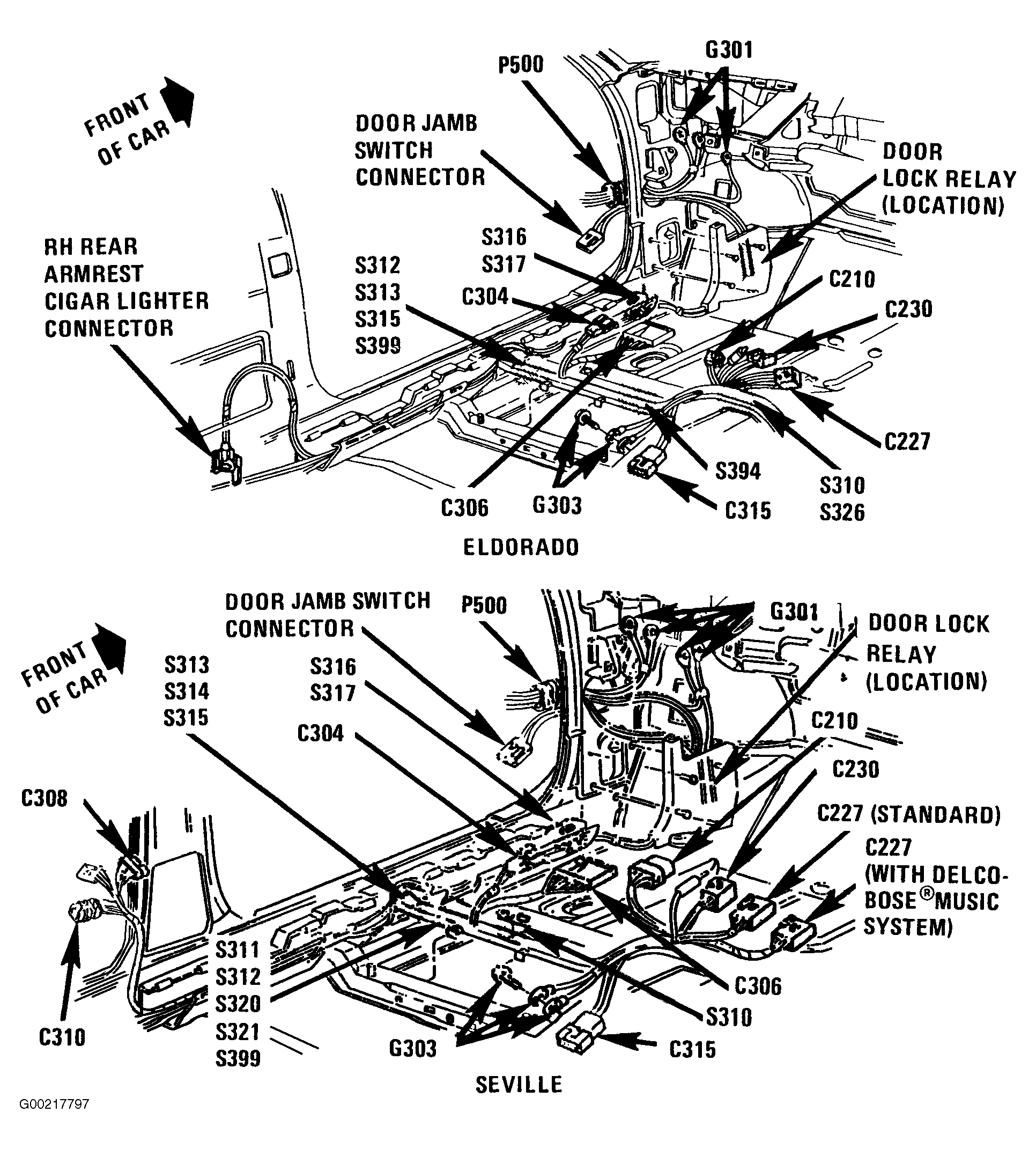 Body main harness, in LH front door, ten inches from power window switch. See Fig 1 |