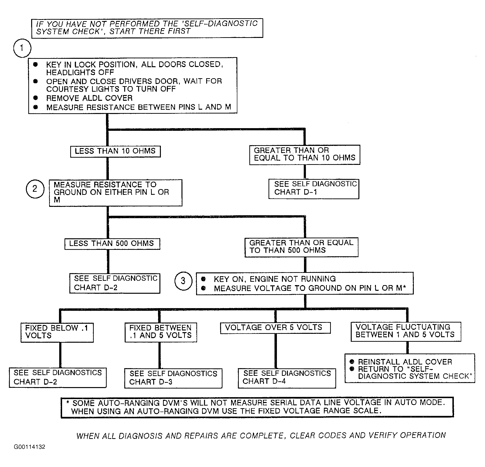 Home >> Cadillac >> 1992 >> Allante F7/ME9 >> Repair and Diagnosis >> Body & Frame >> Body, Cab Control Systems >> Body Computer Module >> Self Diagnostics System Check >> Chart D: Data Circuit Problem