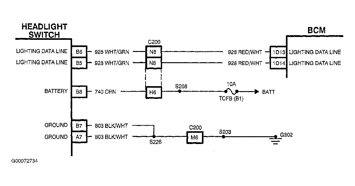Check for poor connection of power, ground, and data circuits to the Headlight Switch.