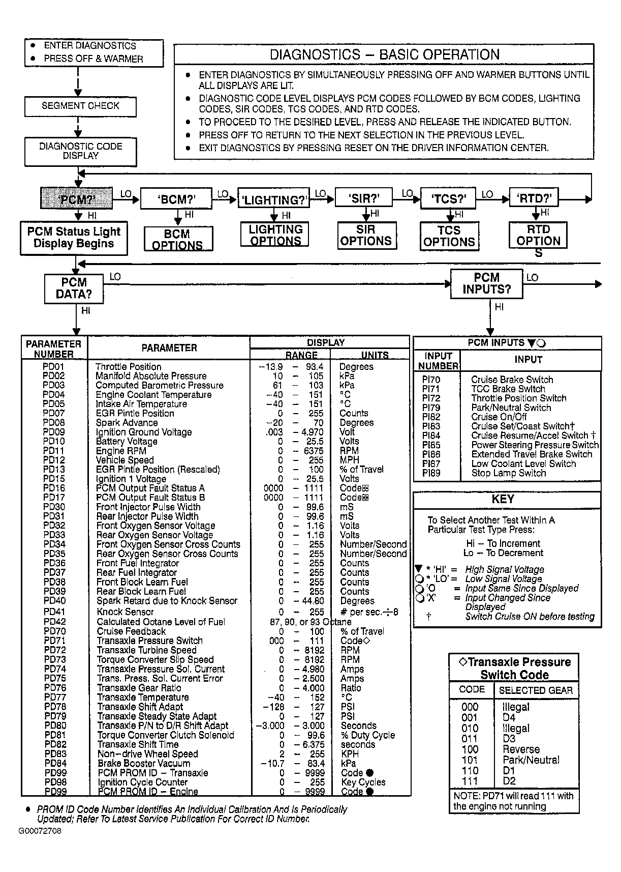Operating the vehicle in diagnostics for extended time periods without the engine running or without a battery charger will cause the battery to run down and possibly relate false diagnostic information, or cause a no start condition. To ensure proper operation, attach a battery charger if vehicle is to be operated in diagnostics without engine running for periods longer than 1/2 hour.