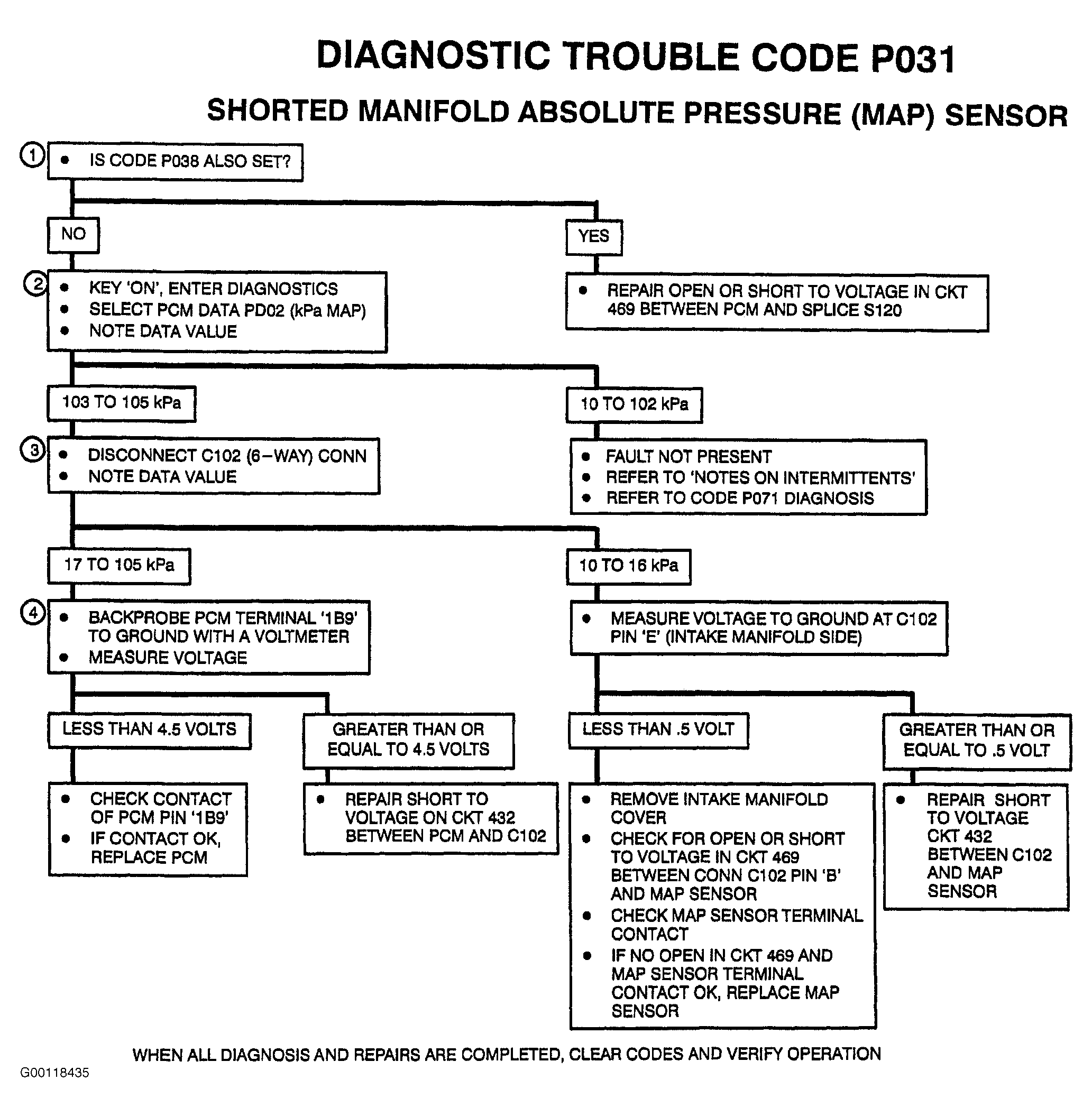 - If Code P038 is also set, CKT 469 or 455 is open or shorted to voltage because MAP sensor and IAT sensor share the same return.