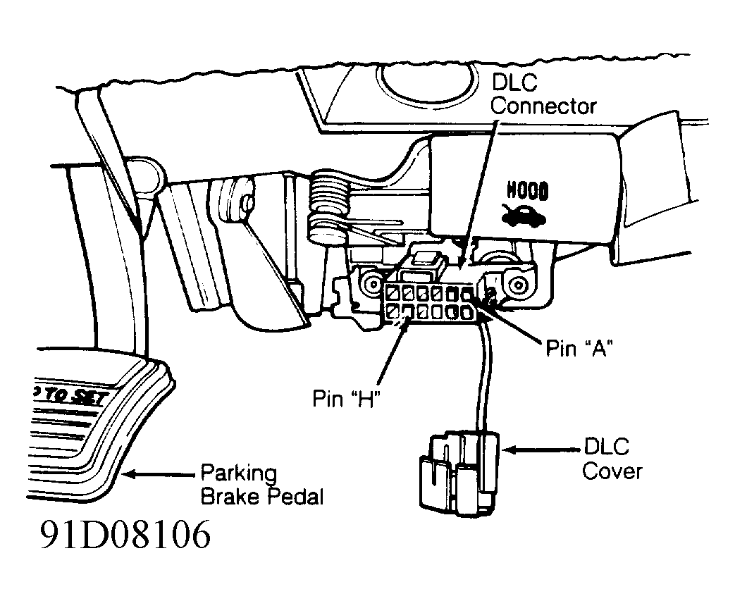 - Ground pin "H" to pin "A" of Data Link Connector (DLC). See Fig 1 . DLC is located under left side of instrument panel, to right of parking brake. Turn ignition switch to RUN position (engine off). Diagnostic display mode will remain enabled as long as pin "H" is grounded, serial data link communications has not been initiated and vehicle speed is less than 5 MPH.
