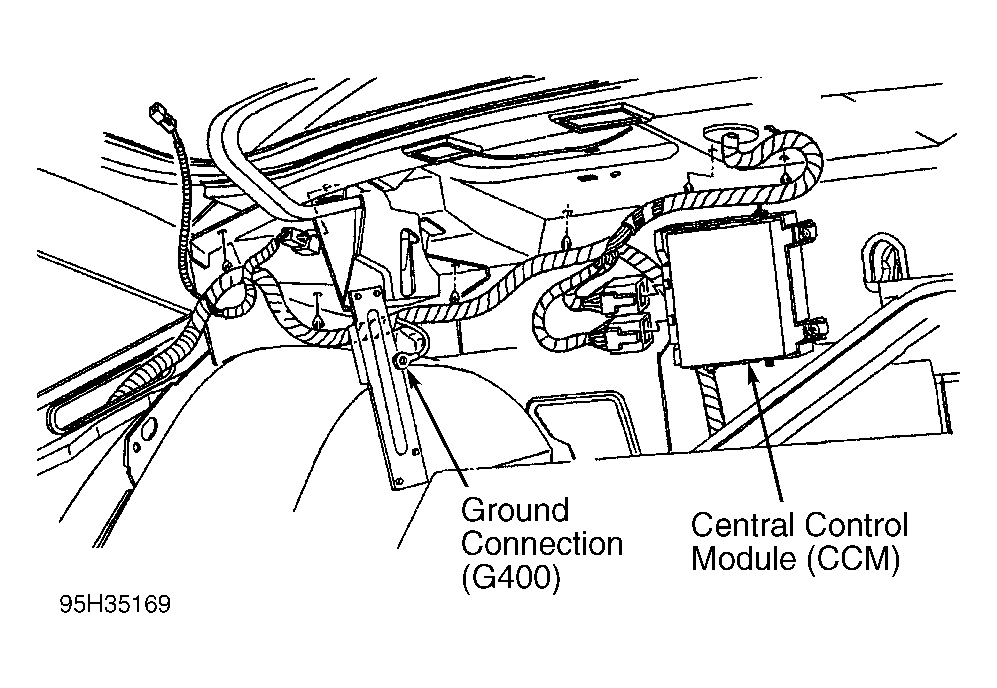 Install fastener studs from old CCM to new CCM. Connect CCM harness connector C1, then harness connector C2. Slide CCM into plastic tray and tighten nuts securing CCM to tray. Reconnect negative battery cable. Ensure CCM ground connection is tight to avoid damage to CCM. See Fig 1 .