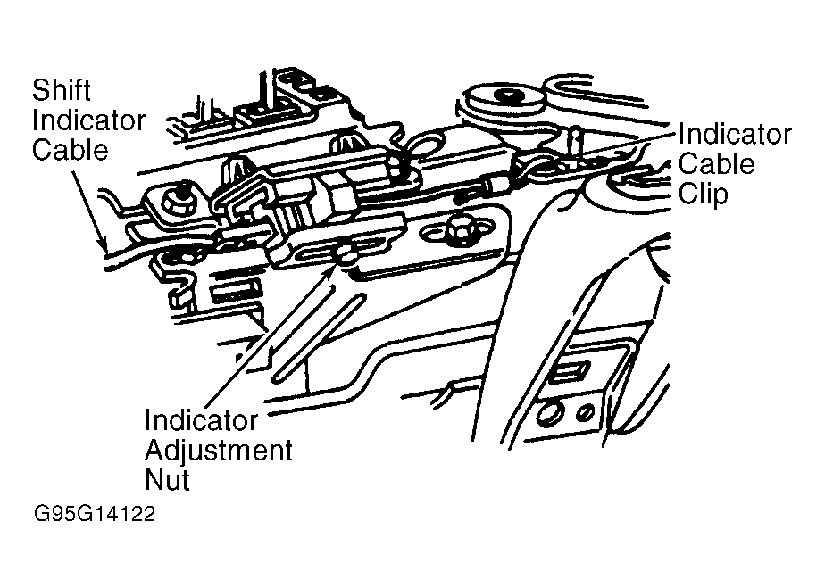 - Position shift lever in "N" position. Loosen shift indicator adjustment nut on steering column. Slide adjuster until shift indicator is centered in Neutral position.