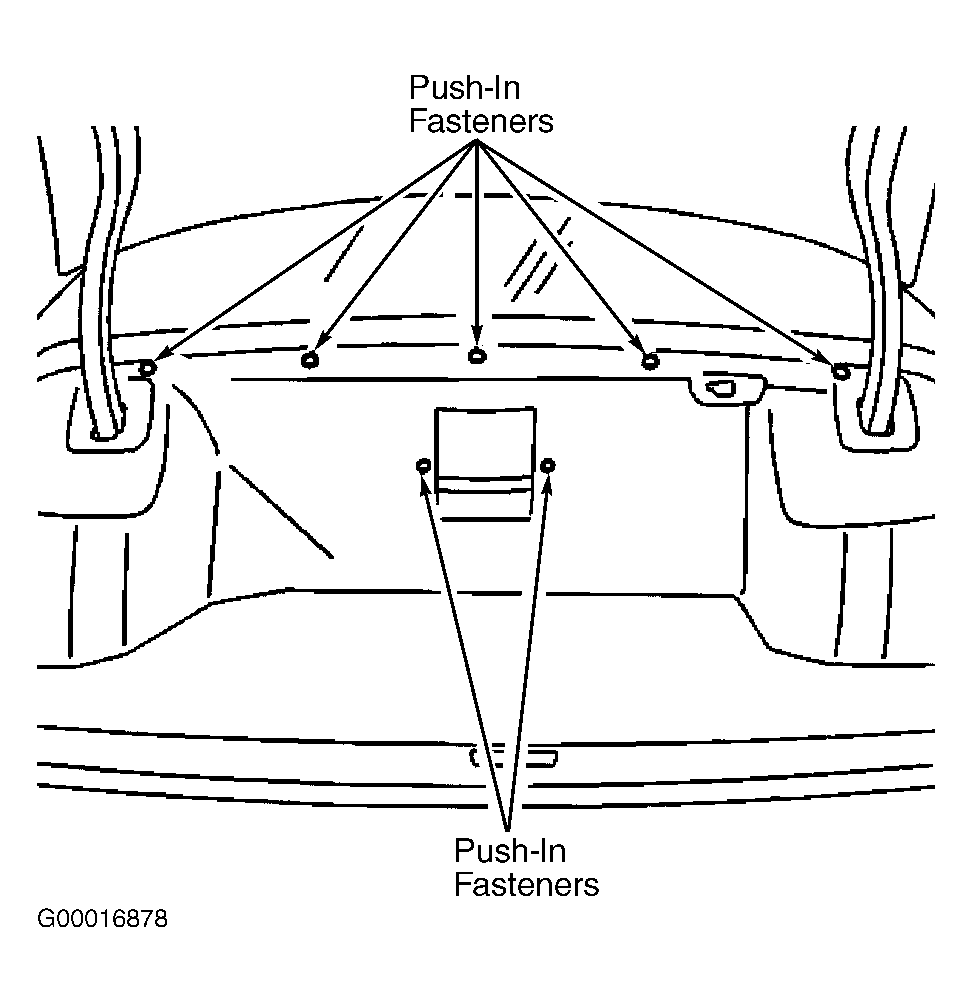 - Open rear compartment lid. Remove push in retainers from top edge and center of rear compartment front trim panel. See Figure . Remove rear compartment front trim panel from rear compartment.