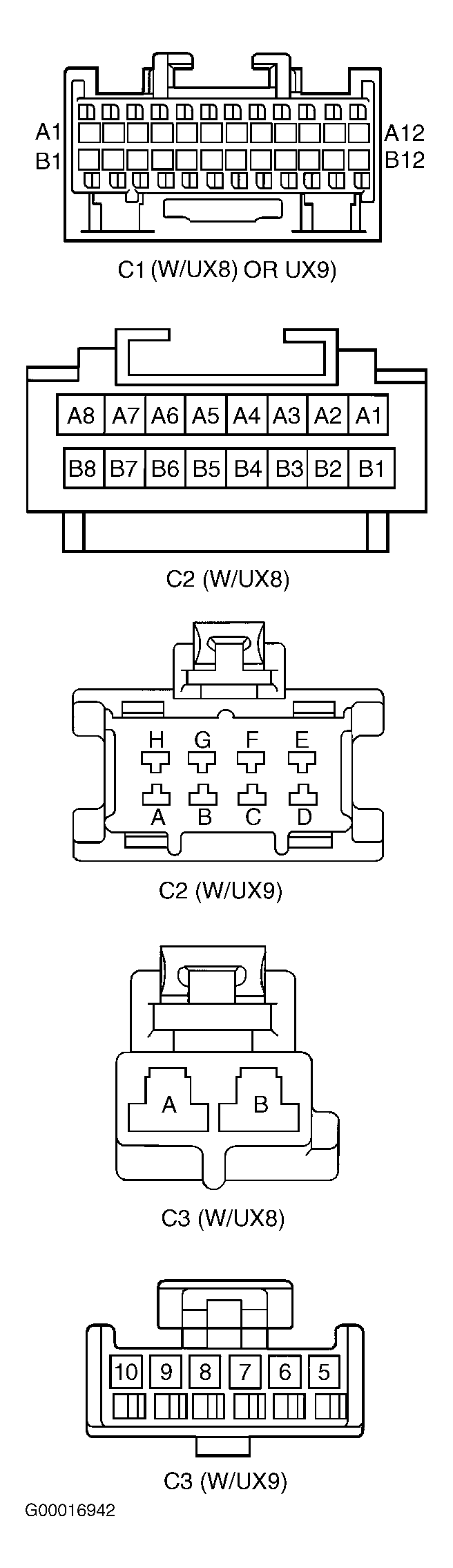 - Check for short to ground or short to voltage in Purple wire between radio amplifier connector C1 terminal B11 (with UX9) or connector C3 terminal No. 5 (with UX8) and one of the following components: