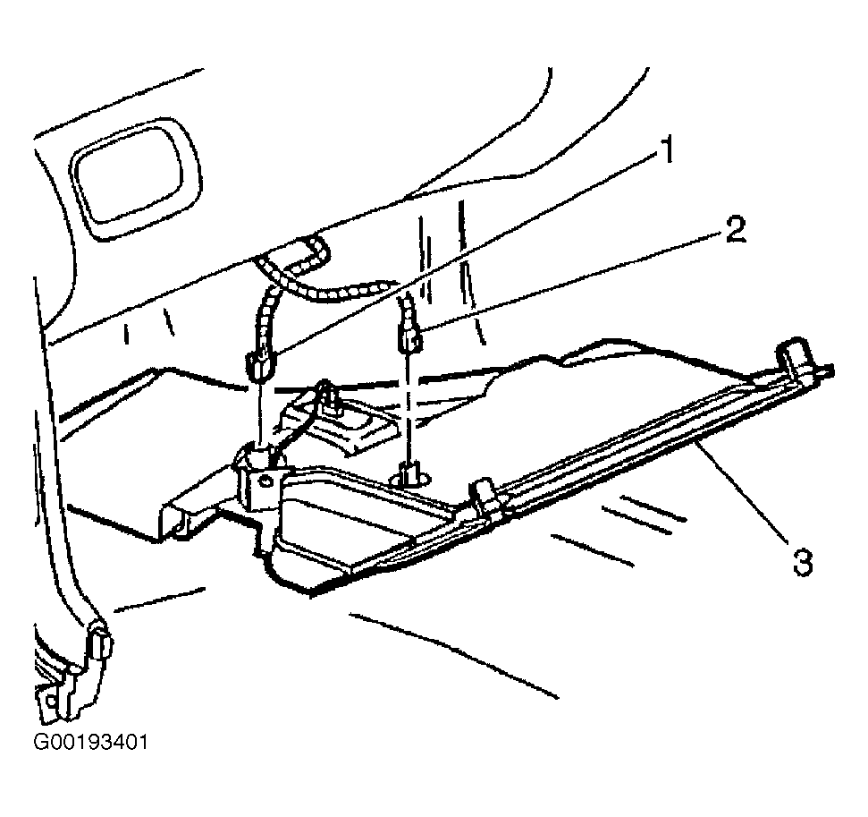 - Remove fasteners securing closeout insulator panel (3) to instrument panel retainer. Remove push-in retainer to release closeout insulator panel from IP retainer. Turn heater temperature sensor (2) 1/4 turn counterclockwise to remove sensor from closeout insulator panel (3). Disconnect electrical connector (1) from lower IP courtesy light. See Fig 1. Slide closeout insulator panel rearward to remove from vehicle.
