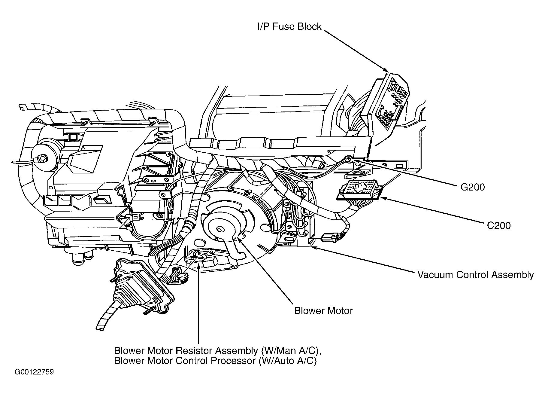 | Blower Motor Control Processor (W/ Auto A/C) | Behind right side of dash, in HVAC module. See Figure . |