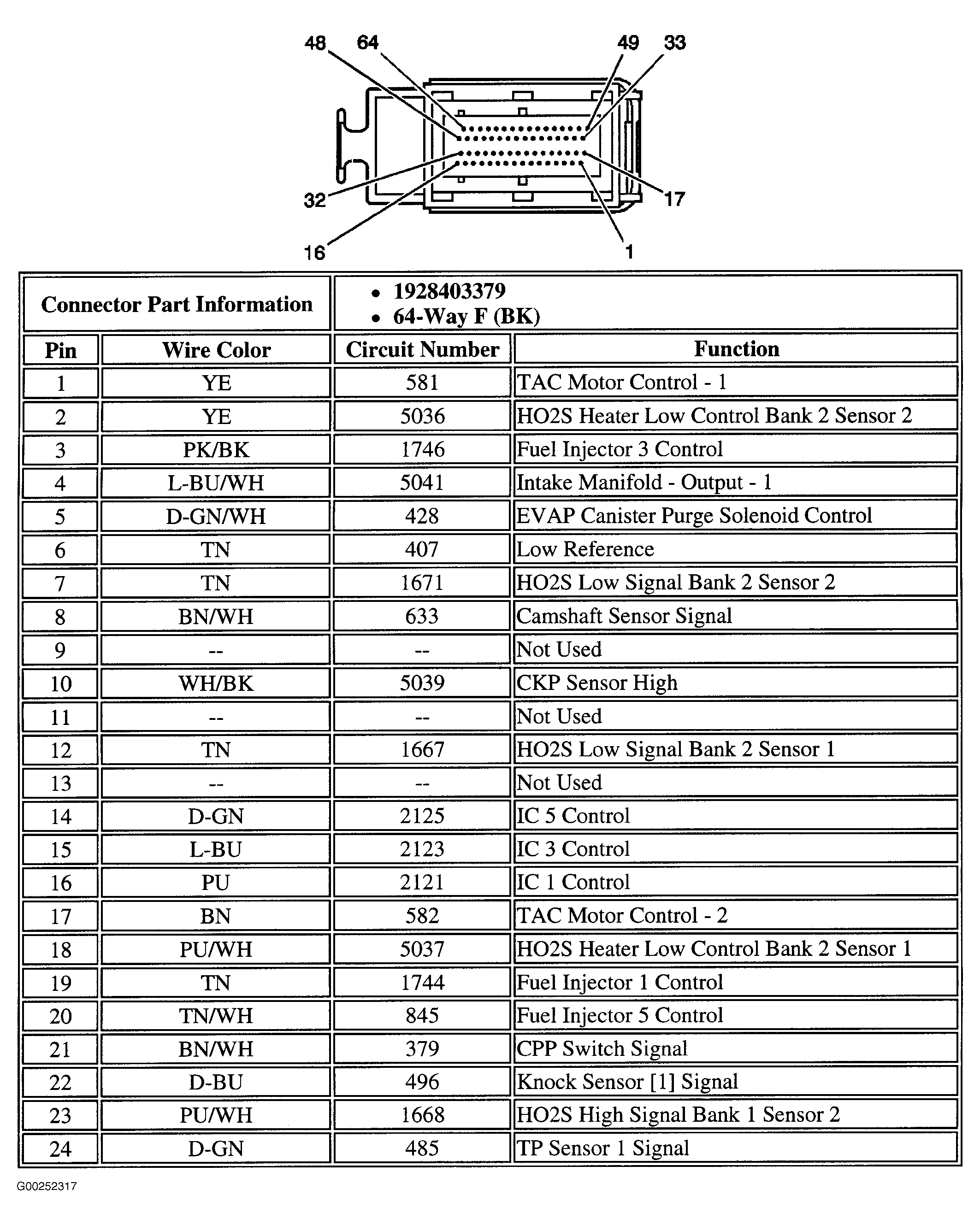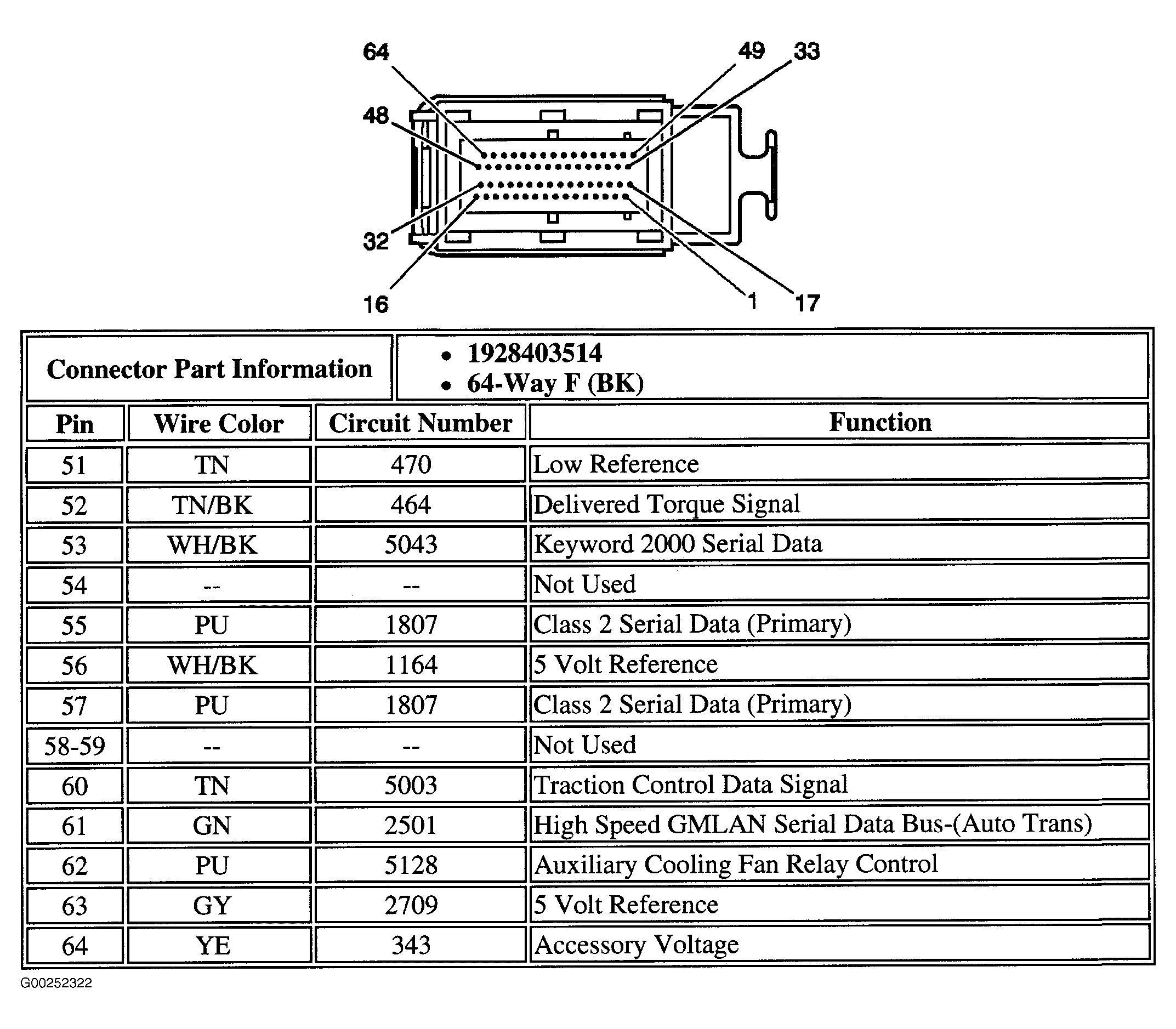 - Using DVOM, check for battery voltage between ECM continuous power terminal(s) and ground. For connector terminal identification, see Figure -Figure . See WIRING DIAGRAMS . If battery voltage is not present, check for open fuse or fusible link. If fuse or fusible link is okay, check for open in circuit between ECM continuous power terminal and power source.