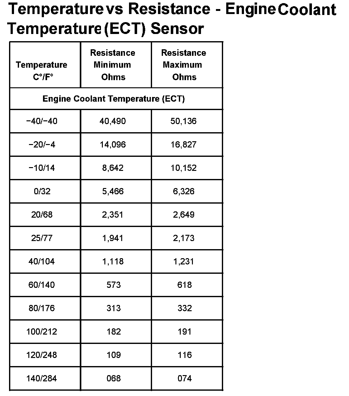 Coolant Temperature Sensor/Switch (For Computer): Specifications