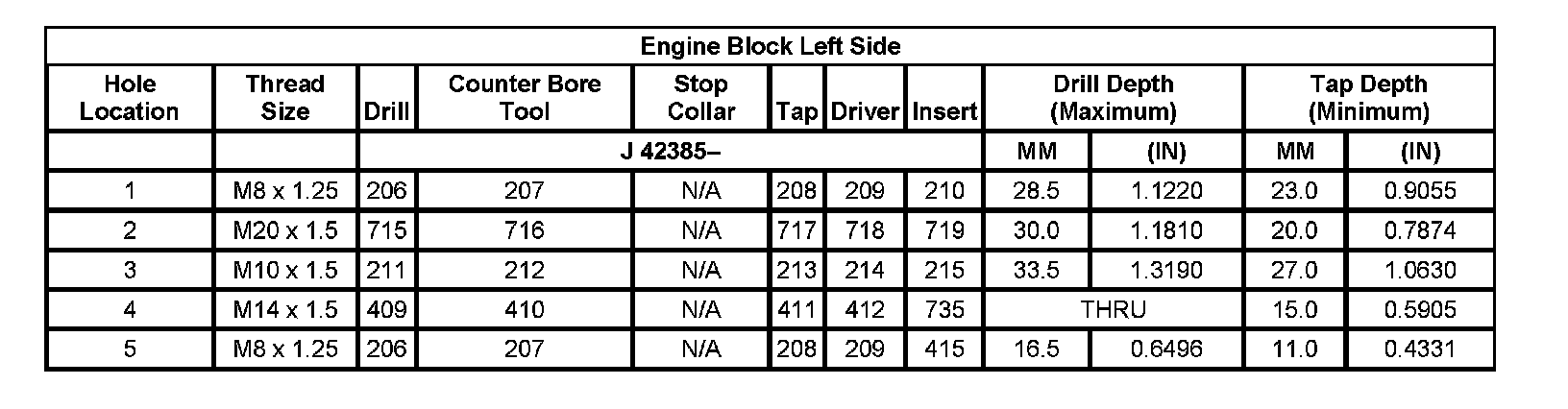 Home >> Cadillac >> 2004 >> CTS V6-3.6L VIN 7 >> Repair and Diagnosis >> Specifications >> Mechanical Specifications >> Engine >> System Specifications >> Thread Repair Specifications