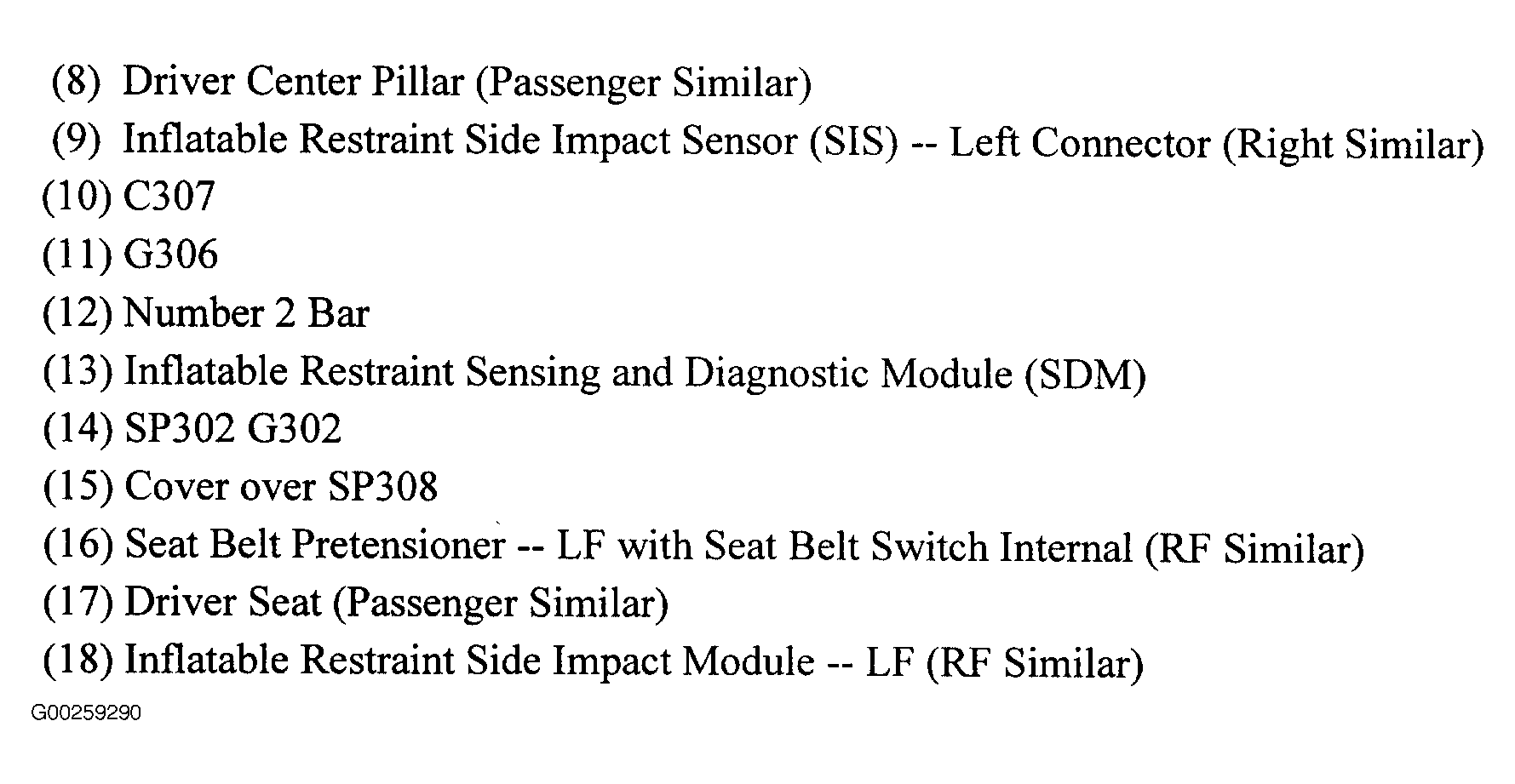 | Inflatable Restraint Side Impact Module (Left) | Left side of driver seat back. See Figure . |