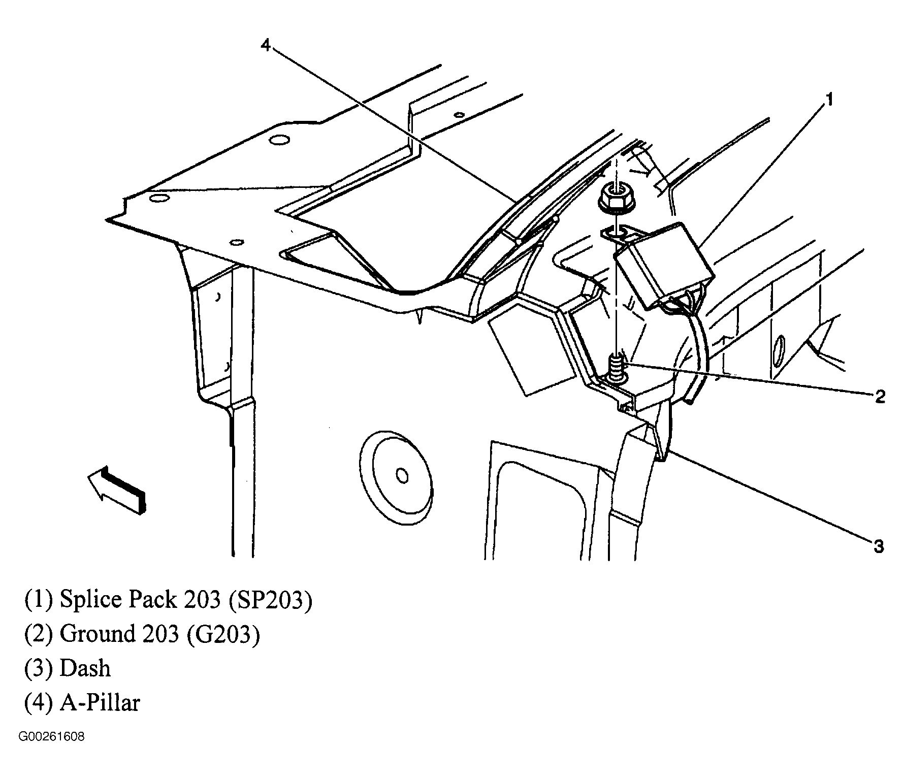 | SP205 | Behind left I/P fuse block. See Figure. |