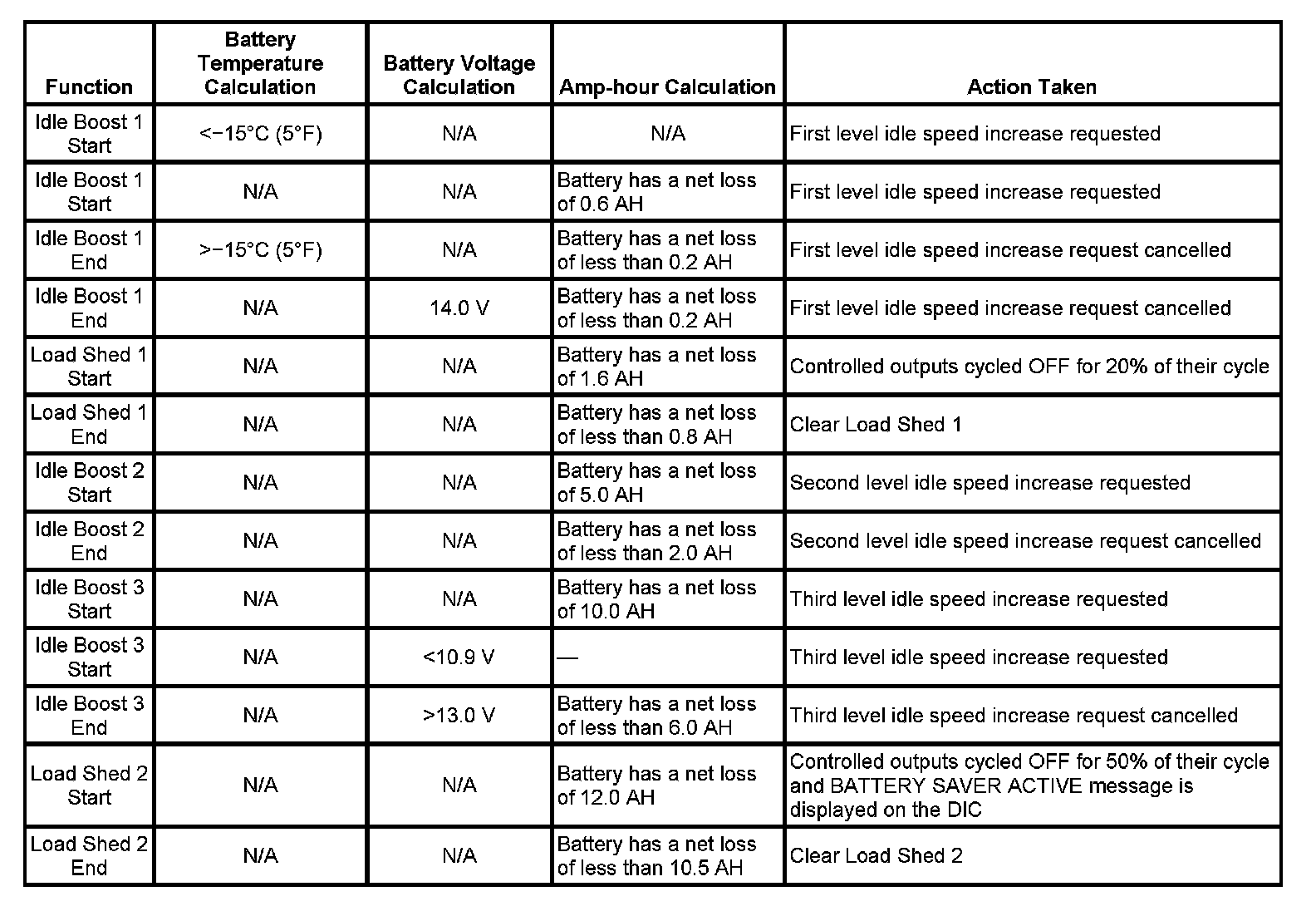 Each load management function, either idle boost or load-shed, is discrete. No two functions are implemented at the same time.