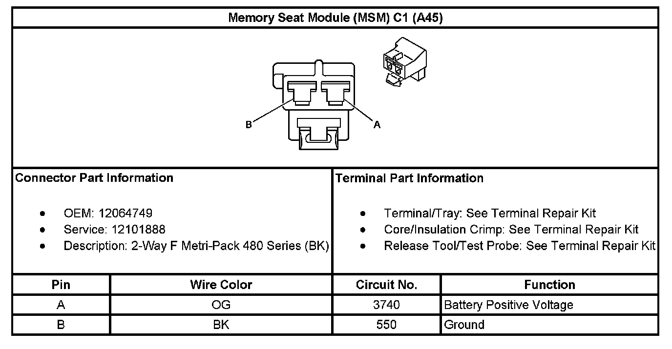 Memory Seat Module (MSM) C1 (With RPO Code A45):