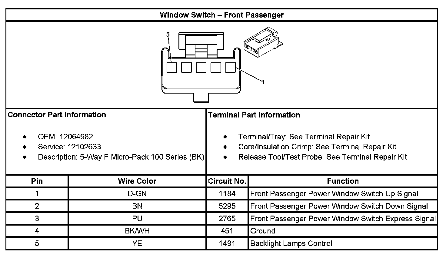 Window Switch - Front Passenger: