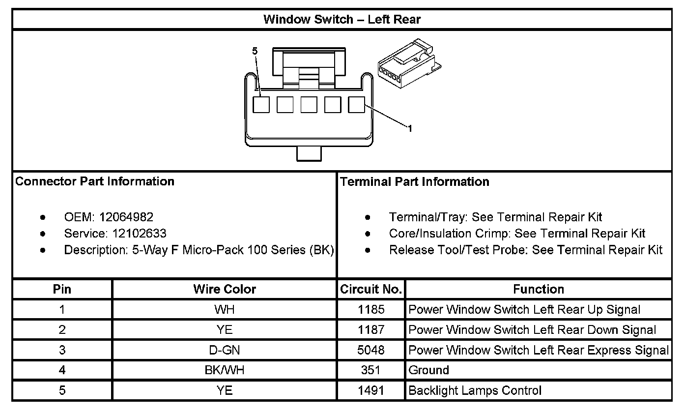 Window Switch - Left Rear:
