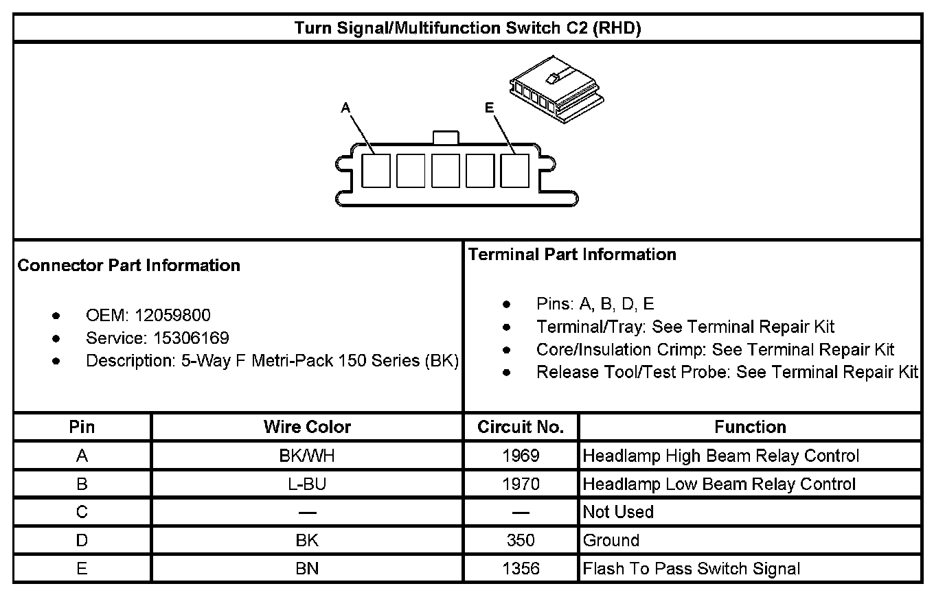 Turn Signal/Multifunction Switch C2 (RHD):