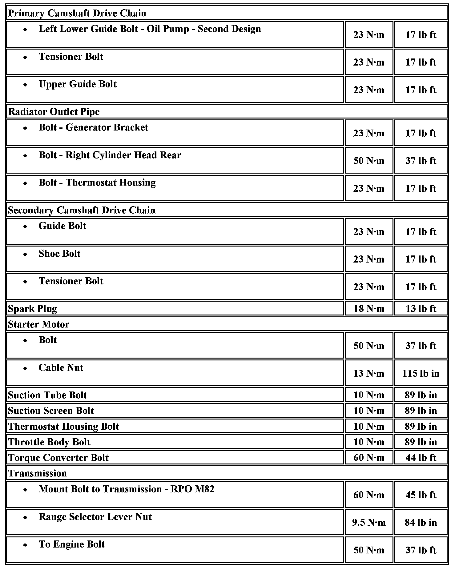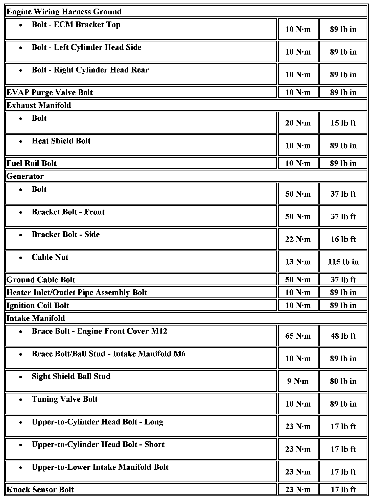 Fastener Tightening Specifications