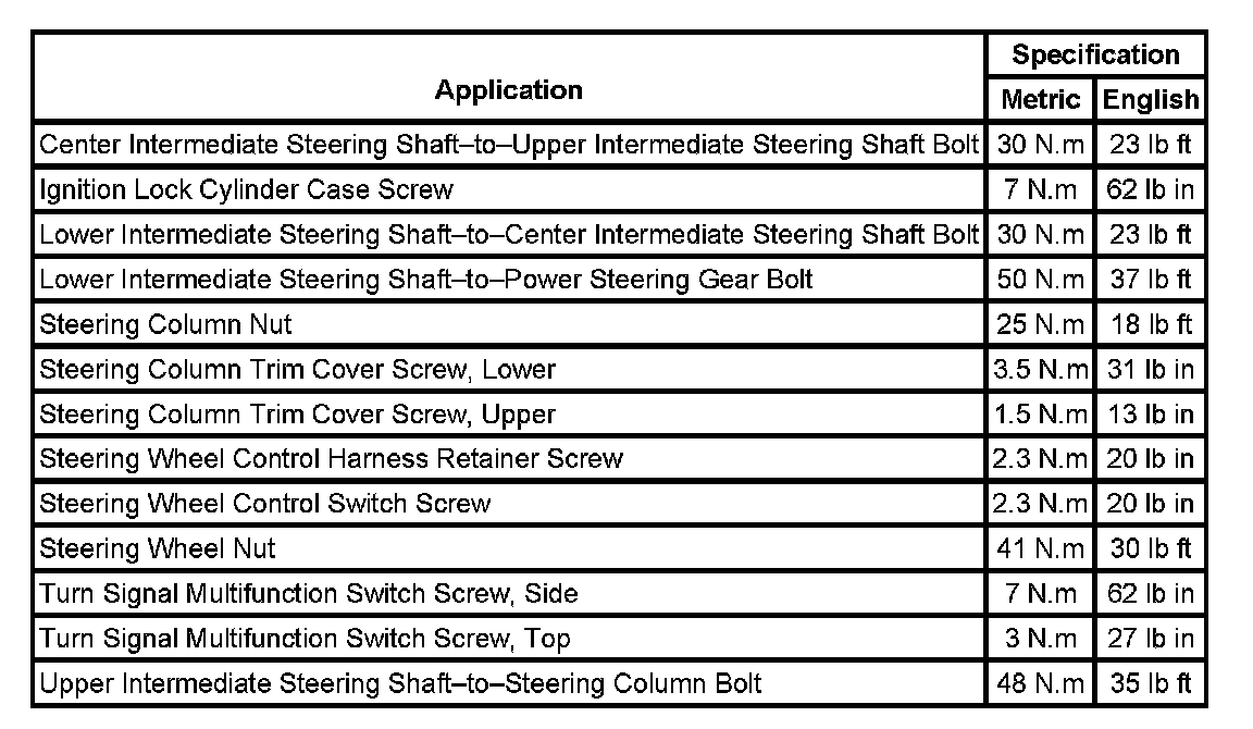 Fastener Tightening Specifications:
