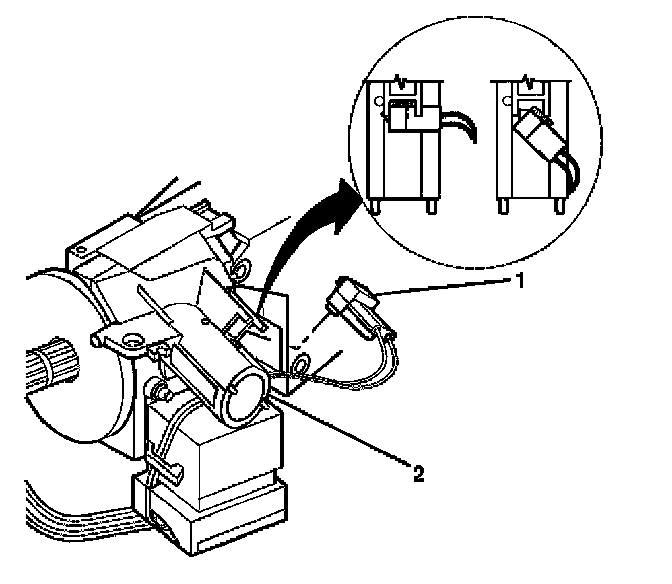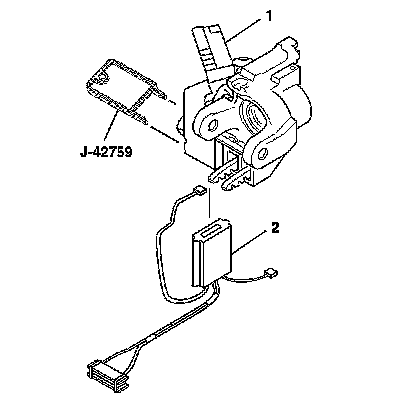 1. Insert J42759 into the ignition lock cylinder case assembly (1) and slide the ignition switch assembly (2) in.