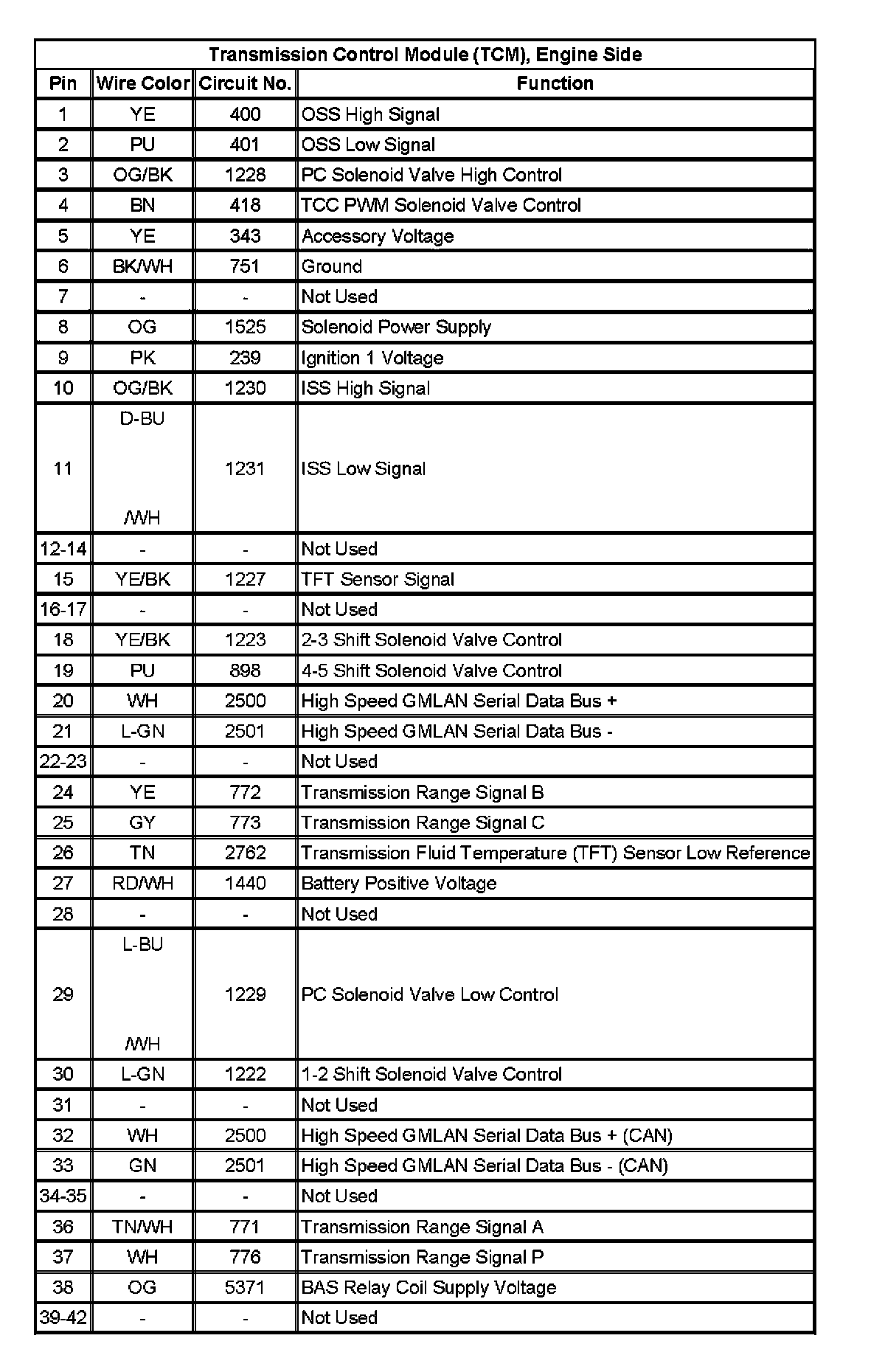 Transmission Control Module (TCM), Engine Side: