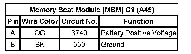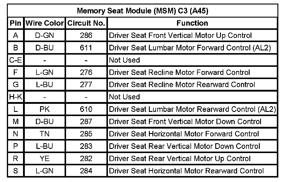 Memory Seat Module (MSM) C1 (A45)