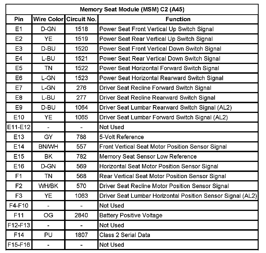 Memory Seat Module (MSM) C2 (A45)