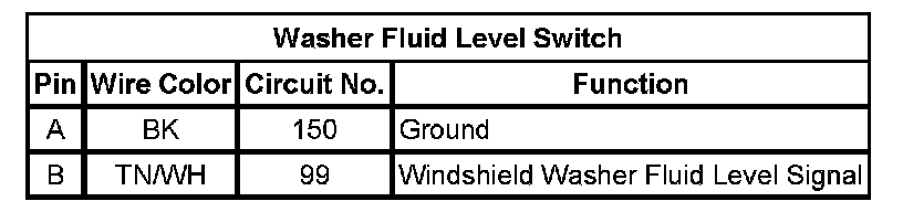Washer Fluid Level Switch