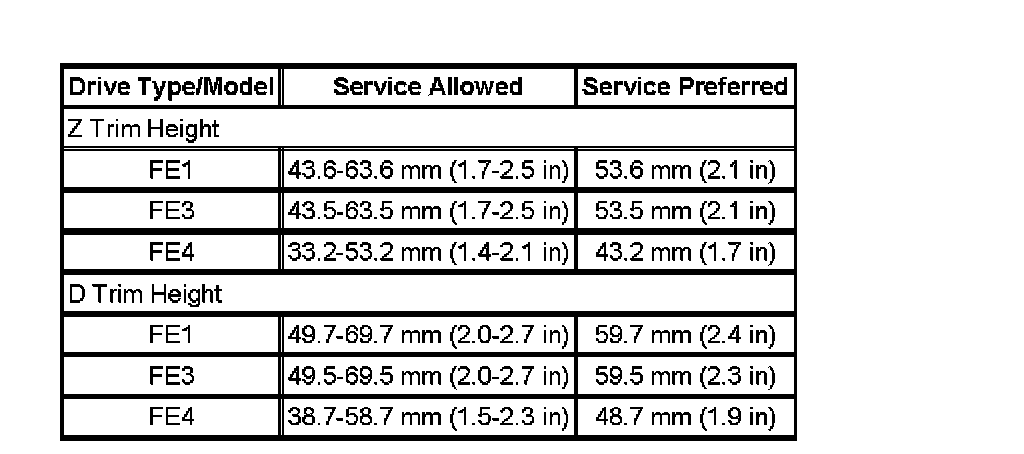 Trim Height Specifications: