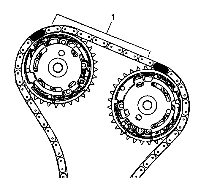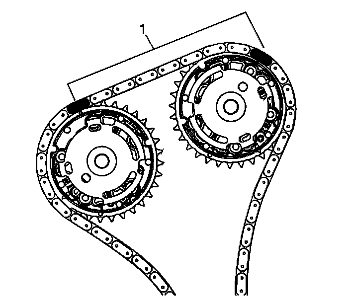 5. Ensure there are 7 links (1) between the timing camshaft drive chain links for the camshaft position actuator sprockets.