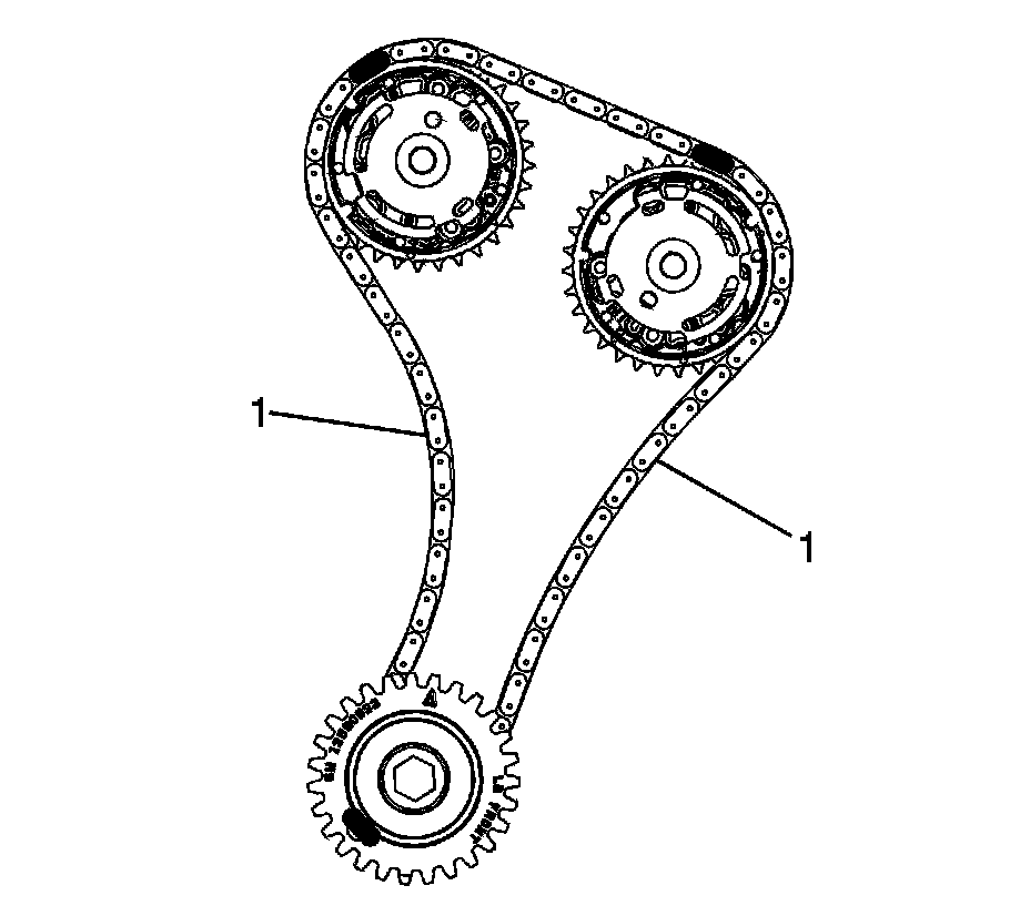 8. There will be 18 links (1) between the right camshaft intermediate drive chain idler timing camshaft drive chain link and each right camshaft position actuator sprocket timing camshaft drive chain link.