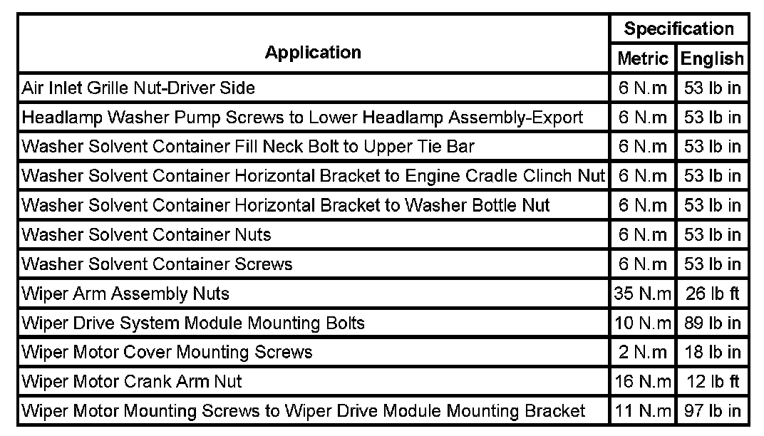 Wiper and Washer Systems: Specifications