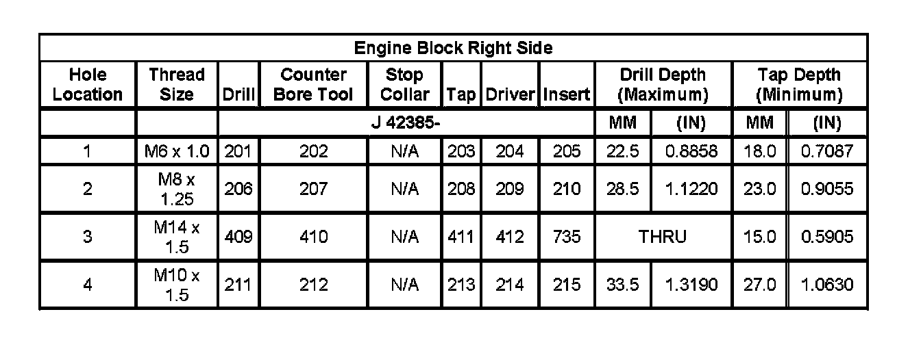 Home >> Cadillac >> 2007 >> CTS V6-3.6L >> Repair and Diagnosis >> Engine, Cooling and Exhaust >> Engine >> Specifications >> Thread Repair Specifications