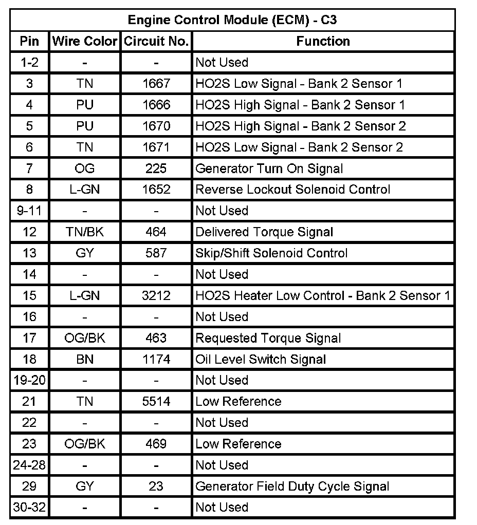 Engine Control Module (ECM) - C2 (Pin 1 To 22):