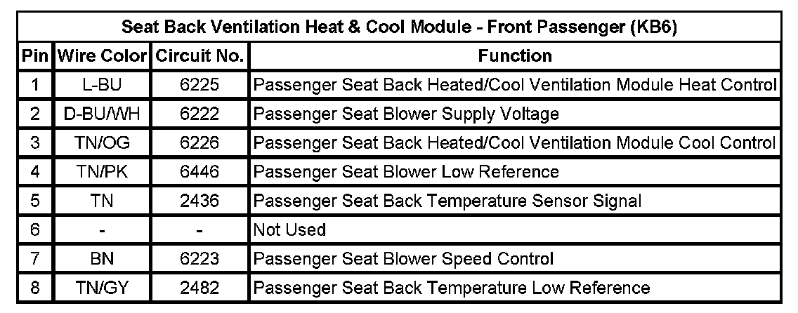 Seat Back Ventilation Heat & Cool Module - Front Passenger (KB6)