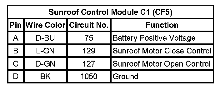 Sunroof Control Module C1 (CF5)