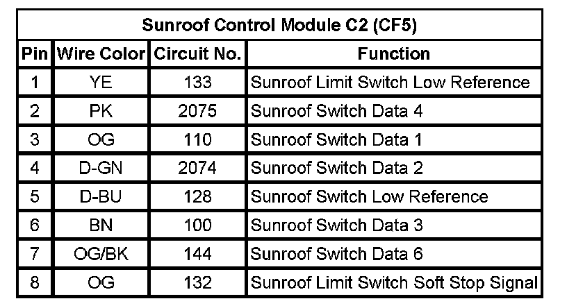 Sunroof Control Module C2 (CF5)
