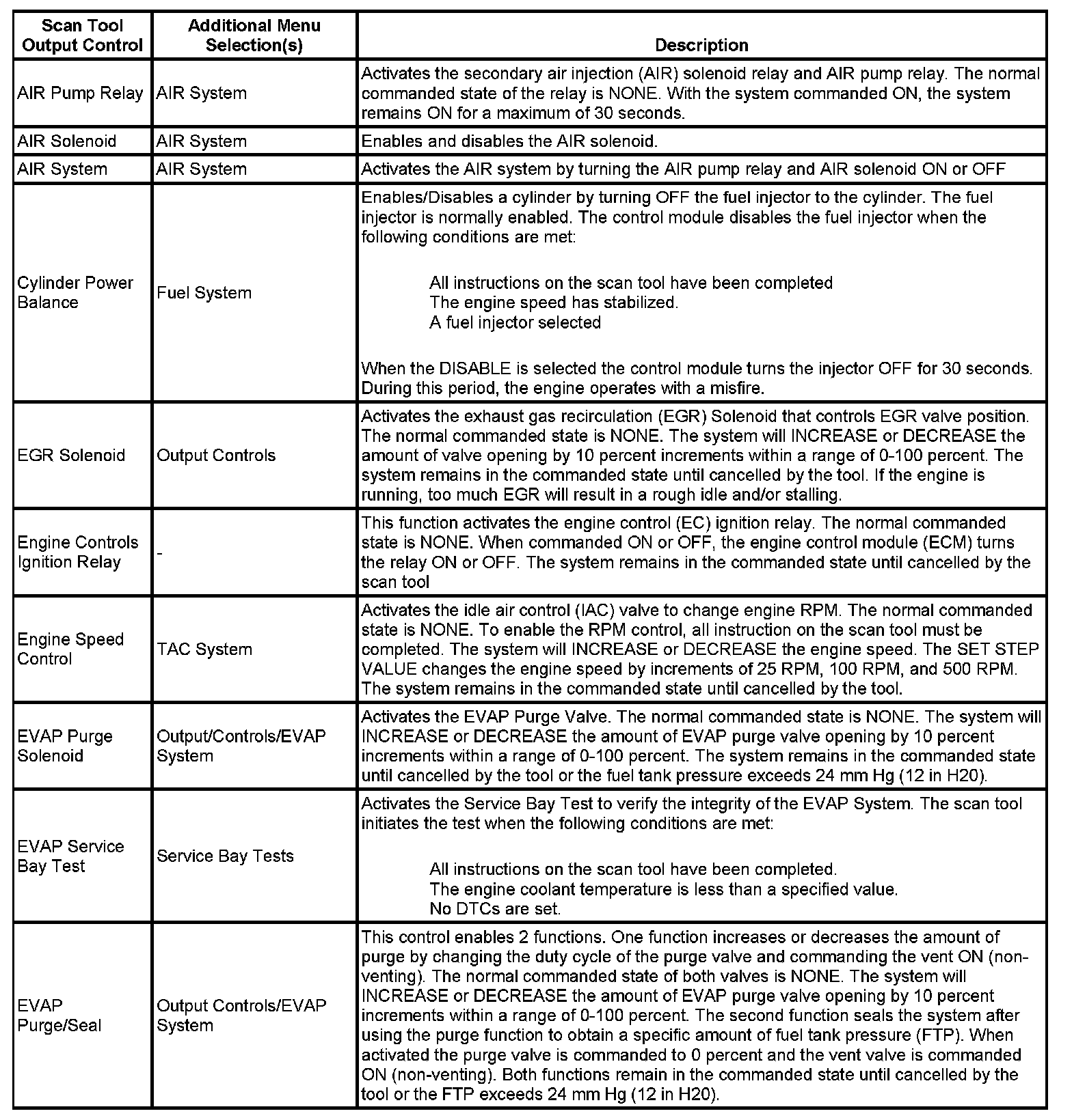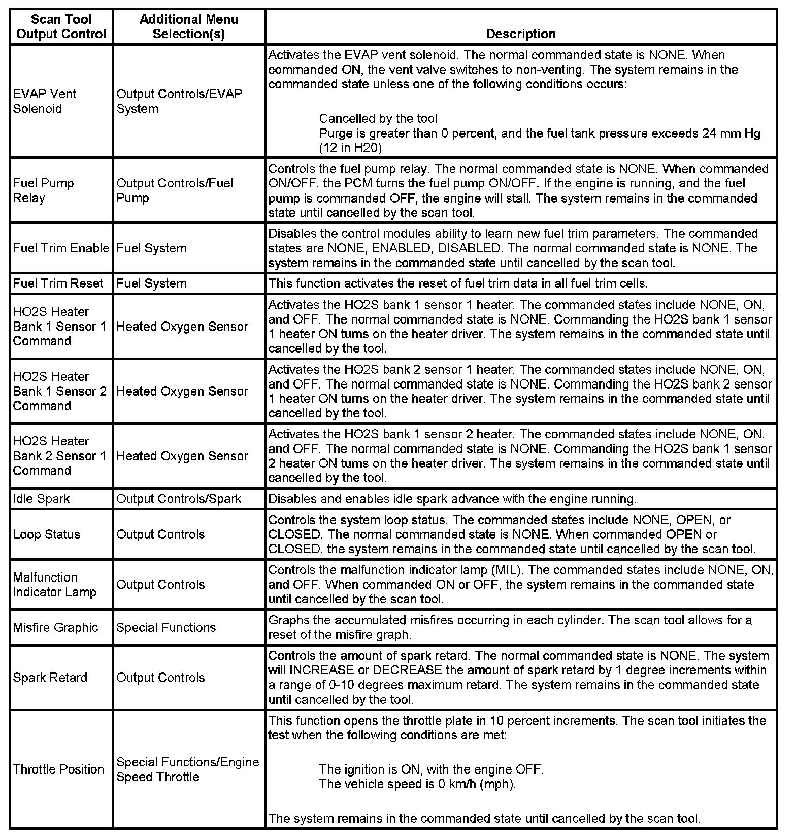 Scan Tool Output Controls
