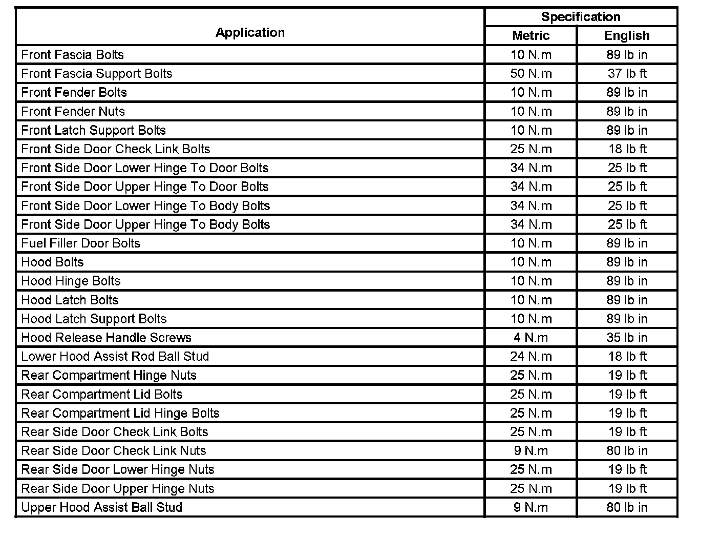 Fastener Tightening Specifications