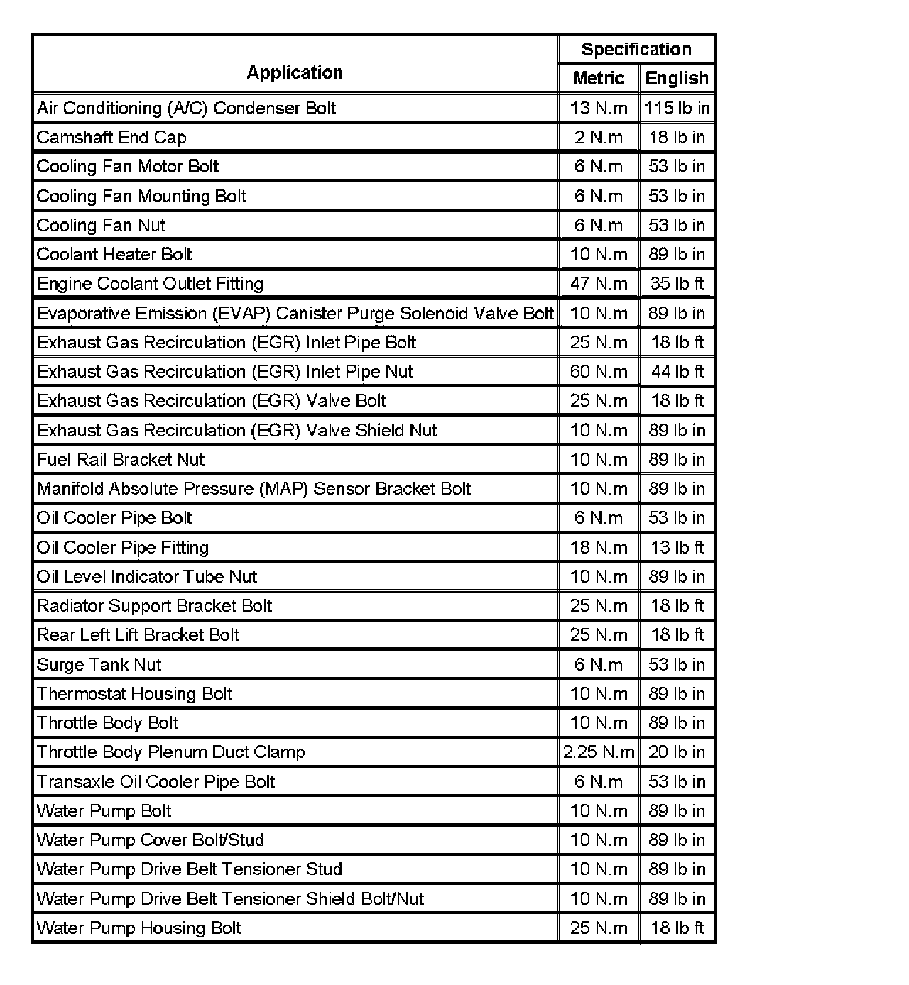 Fastener Tightening Specifications: