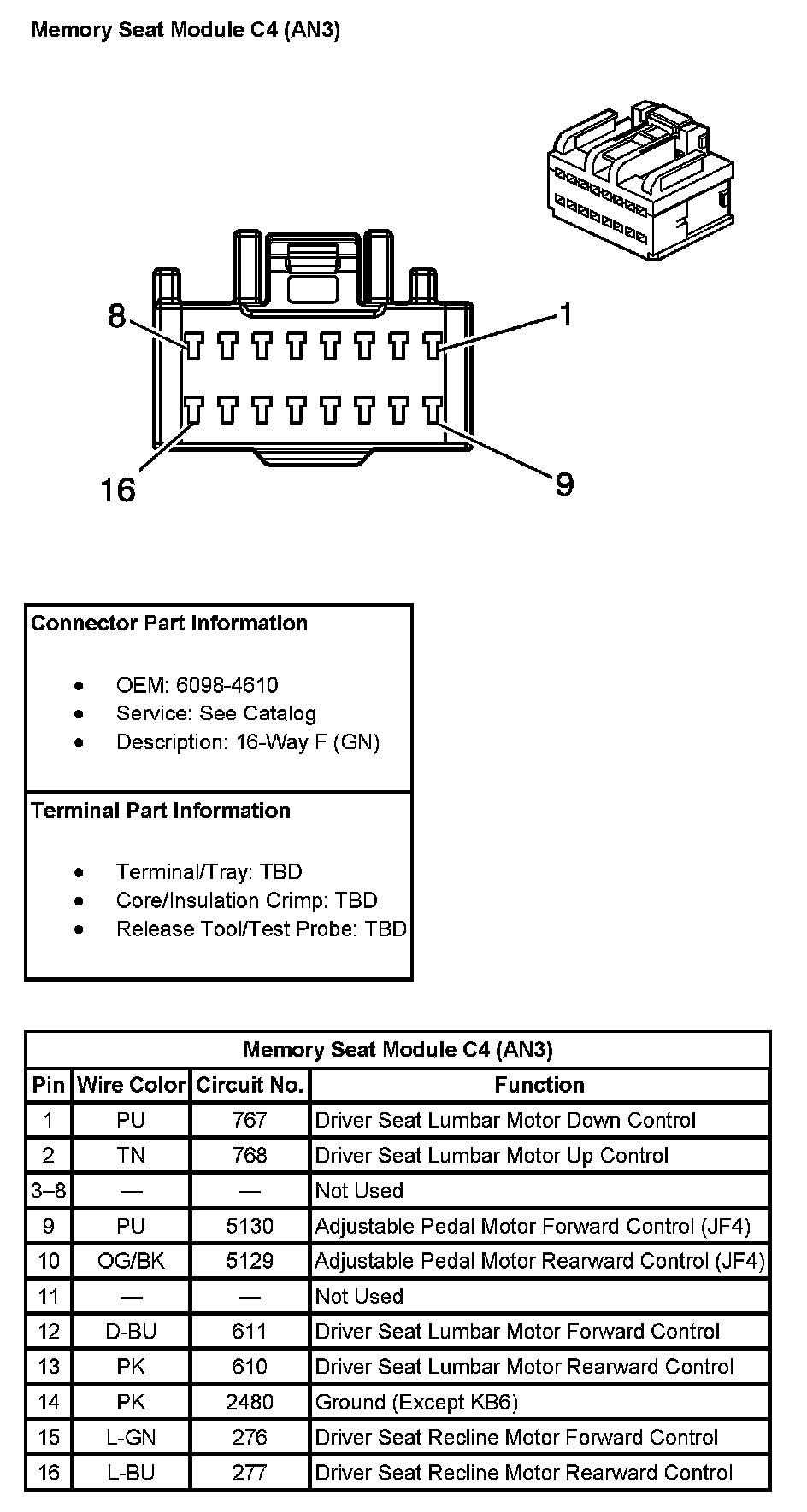 Memory Seat Module C4 (With RPO Code AN3):